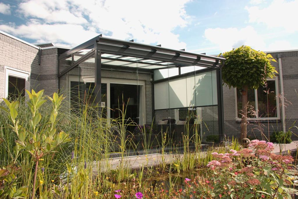 Die Seitenwände können Sie nach Wunsch auch richtig schließen und so einen „Kalt-Wintergarten“ entstehen lassen. Die Ganzglas-Schiebetüren lassen Ihnen immer noch die ganzseitige Öffnung zum Garten und dennoch können Sie nachts oder in der Zeit, in der Sie die Terrasse nicht nutzen, die gesamte Einrichtung gut verschlossen stehen lassen. Keine Katzen auf Ihren Polstern, kein Wind und Regen, der Ihre Lounge-Möbel strapaziert.